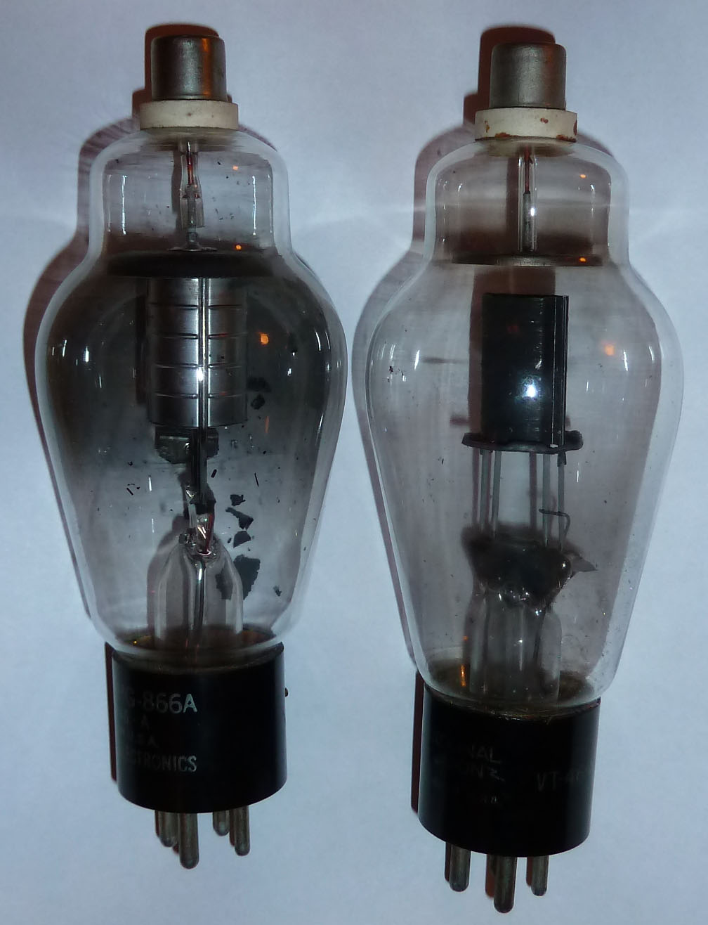 Нажил пару VT-46-A. Военный аналог 866А. Обнаружил, что рути (расходного материала!) в военном варианте гораздо меньше, чем в общего применения. Видимо учли, что срок службы военной техники ок. 100 часов.:confused: