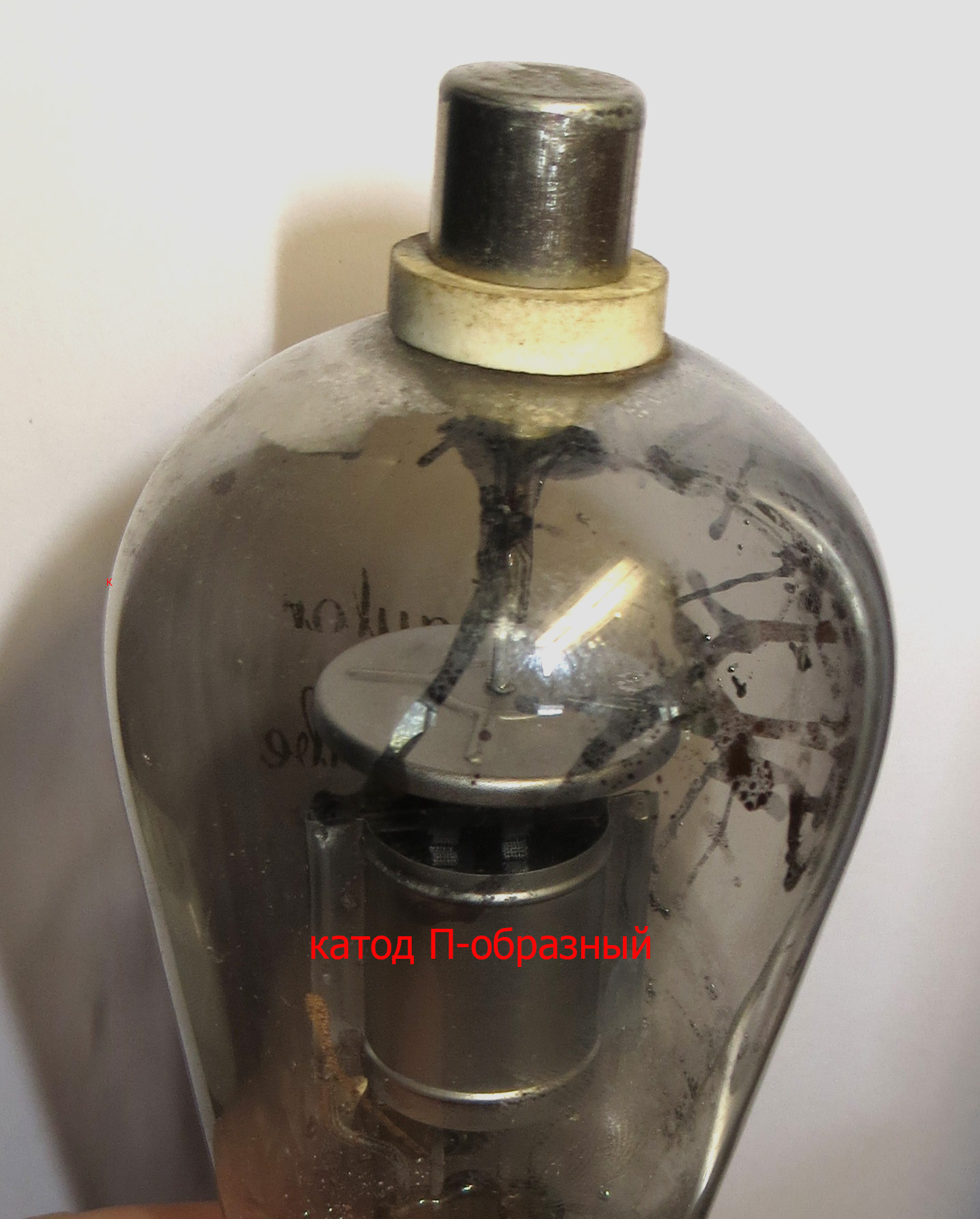 Интересен тем, что несмотря на анодное напряжение до ~8 кВ, анод выведен не через верхушку баллона, а через цоколь.