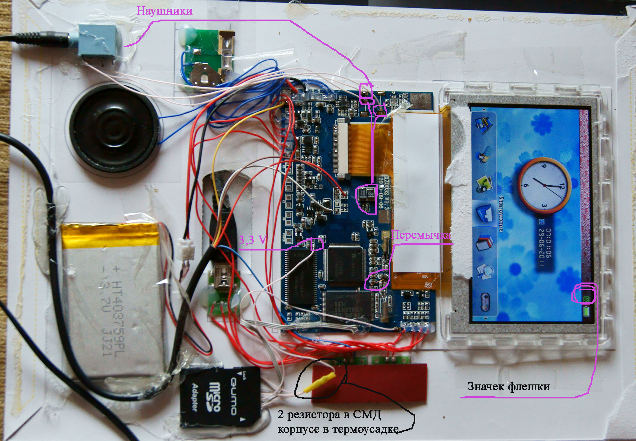 Напаял флешку, джойстик и наушники, осталось найти где нибудь корпус, а то в кортонной вкладке у меня до сих пор всё.