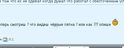 Вообще вот тут чел описывает все очень подробно. С картинками показывающими что он видuт. Чел умудрился в нескольких местах сетчатку обжечь зеленым лазером 15 мВт. Причем сначала он попал в глаз отражением от стекла и получил обратимое ослепление. А вот потом уже для пробы засветил напрямую лазером в глаз. Соответственно, картинки и подписи по двум случаям - обратимого и необратимого повреждения сетчатки. Пишет на легком английском. http://www.milankarakas.org/pub/Eye_inj ... njury.html