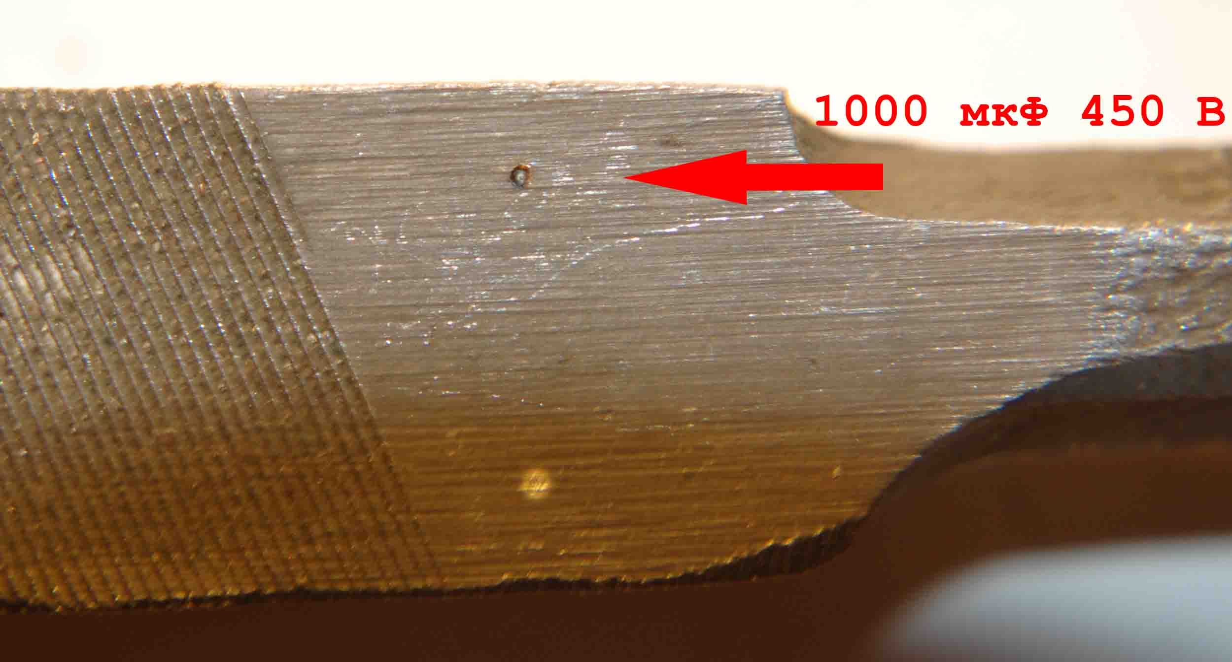 Я, правда, ожидал, что дыры в жести будут поболее. Диаметром миллиметр-полтора. Но зато теперь он жесть пробивает практически всегда, а со штатным конденсатором только иногда. Теперь вот думаю, как бы контролировать температуру лампы, чтобы не жахнула... Или может быть, принудительное воздушное охлаждение с фильтром сделать, что-ли?