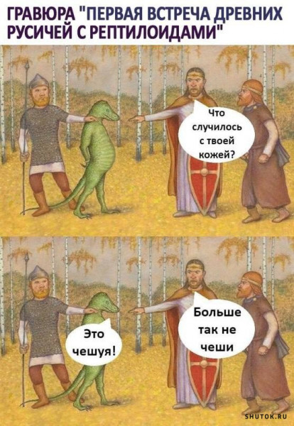 Вы подошли к её подъезду. Неловкое молчание. Она теребит в руке ключи и ждёт когда ты её поцелуешь. Ты пытаешься понять зачем ей в руке гаечные ключи... -------------------- Покупательница в магазине: - Мне нужны туфельки, которые не жали бы и выглядели скромными. - Понимаю, вы хотите, чтобы они были большими внутри и маленькими снаружи, так? --------------------- Кладбище ночью - это, пожалуй, единственное место на Земле, где пьяного мужика с битой испугаешься меньше, чем одинокую маленькую девочку в белом платьице с косичками и бантиками. --------------------- Женщины, в отношениях с мужчинами всё просто. Понравился мужчина - подойдите и скажите ему об этом. Всё, теперь это его проблема, а не ваша. Сам понравился, сам пусть и выпутывается.